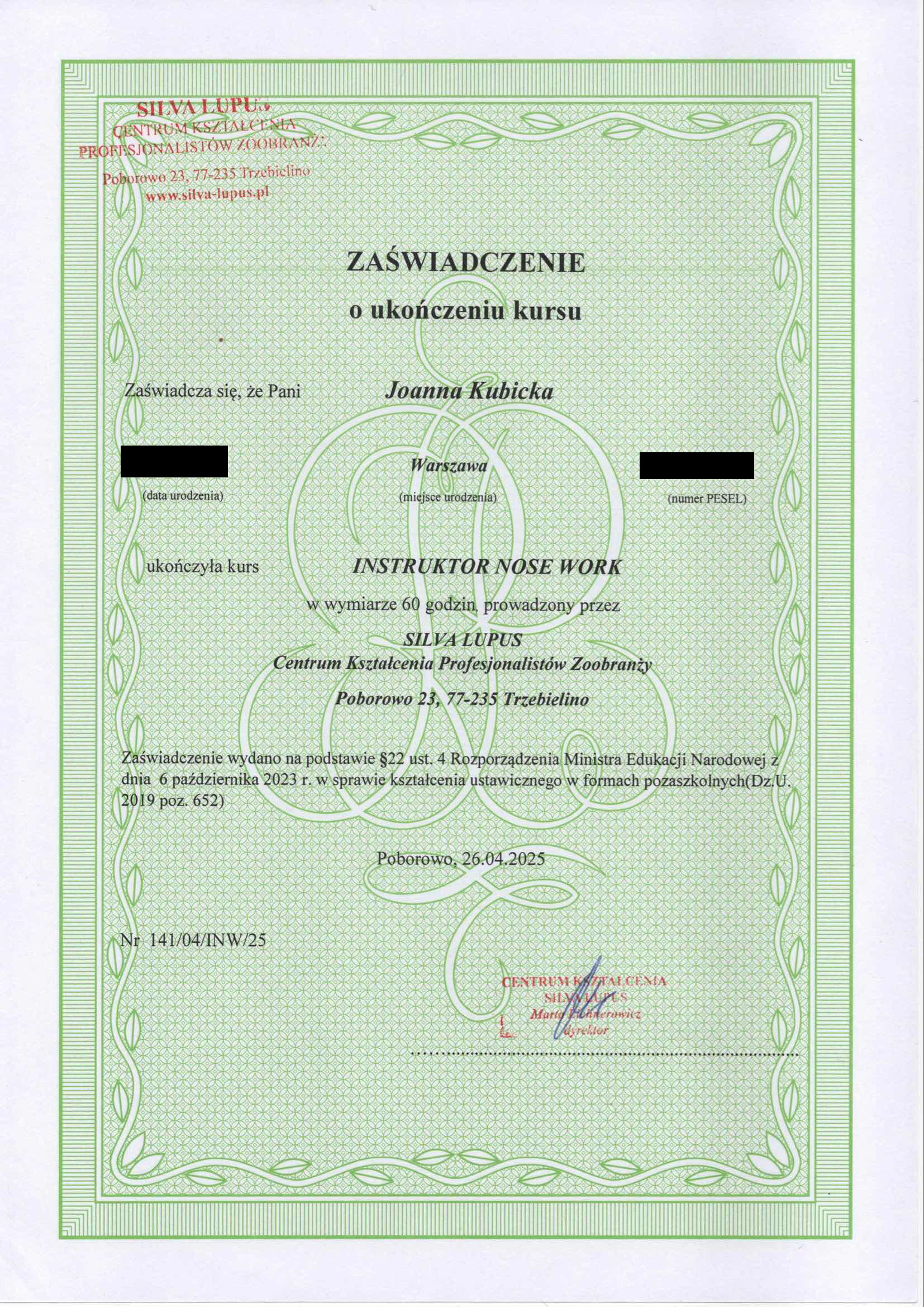 Dziś tę precyzję i spokój wnoszę do treningów z psami sportowymi, seniorami oraz tymi, które potrzebują wsparcia w powrocie do komfortu życia.
